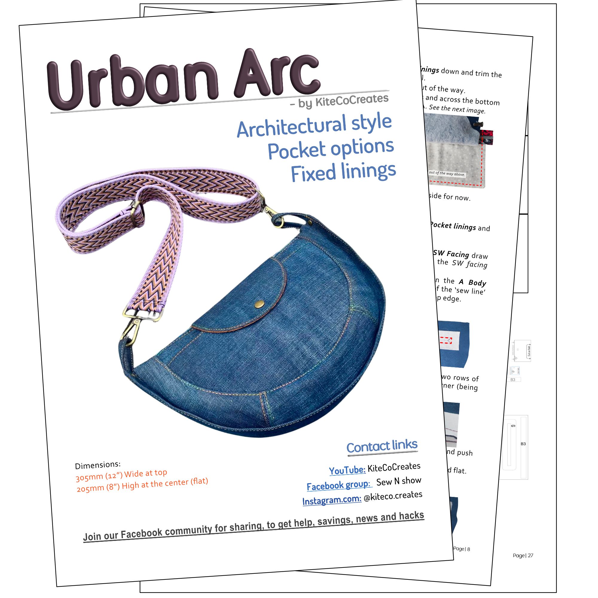 Urban Arc is a modern, structured crossbody bag PDF sewing pattern designed for makers who love clean lines and a polished finish. Created by KiteCo Creates, this pattern focuses on shape, structure, and precise construction techniques that elevate handmade bags.